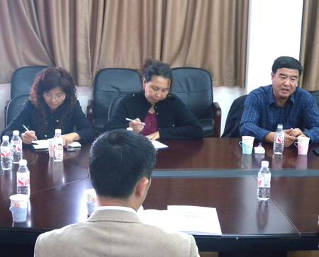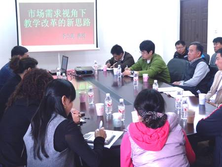 10月12日,在社科中心会议室会议室,学院副院长李杰凯教授(下图右一)应邀为我院党总支作了题为《市场需求视角下教学改革的新思路》专题报告。vwin德赢ac米兰官网党总支书记、院长曹继红教授(下图右二)主持会议,全院教职工听取了报告。