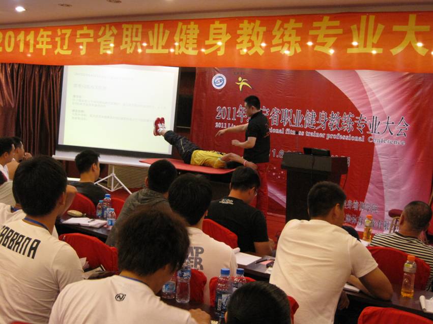 2011年6月22-23日,健身运动教研室母毅刚、王静宜、王兴、范冬梅四位老师带领专修班20多名学生参加了沈阳大东区好万家商务酒店会议厅举行的辽宁省第一届职业健身教练交流大会。来自各市的健教练员和俱乐部经营管理者200余人参与此项活动。