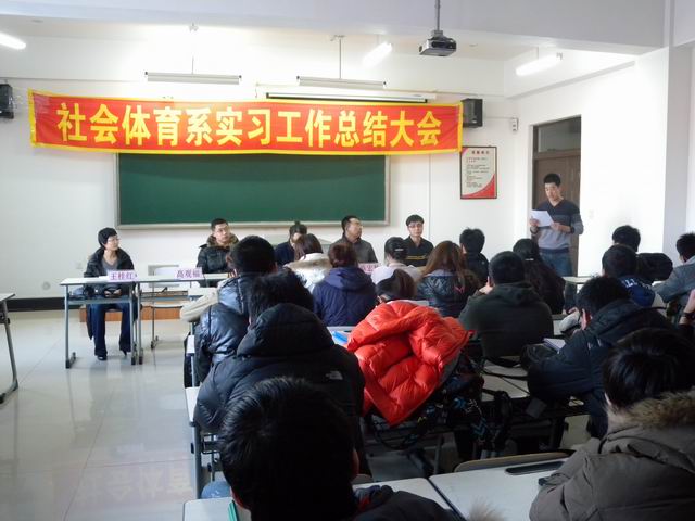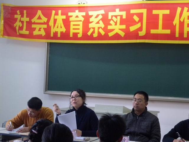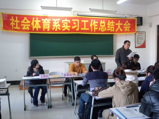 2010年12月27日上午9点整,社会体育系在222教室召开了2007级实习总结大会。社会体育系主任曹继红、书记蔡宏秋、系办公室主任高观福、实习办主任宋学岷以及辅导员出席,会议由教学干事王桂红主持。